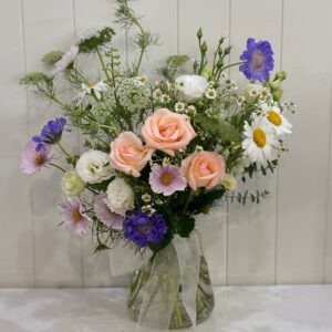 Leave it to the experts to create a stunning, vibrant masterpiece! A Custom made arrangement bursting with the most beautiful bold blooms of the day. Featuring a lively mix of hot pinks, fiery oranges, bold purples and sunny yellows, this bouquet is guaranteed to bring a jolt to any room. Its the perfect way to send a cheerful message for any occasion.