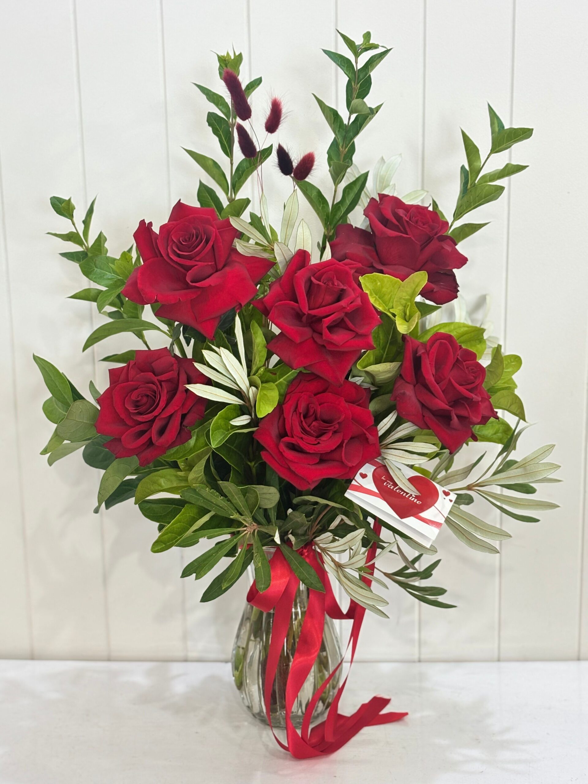 Sometimes six says it best. This intimate arrangement features six premium, long stemmed Ecuadorian roses, traditionally symbolising a blossoming infatuation and the desire to be yours. Its a sophisticated gesture that feels personal, and deeply romantic.